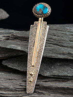 Bisbee Turquoise and Silver Corn Maiden Pin, with 14K Gold Accents