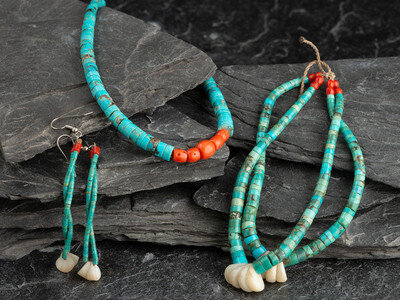 Pueblo Rolled Turquoise, Necklace, Joclas, and Earrings