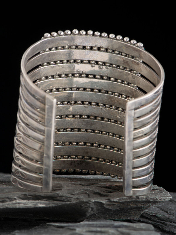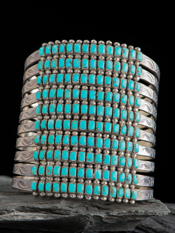 Navajo or Zuni Wide Petit Point Turquoise Cluster Cuff Bracelet