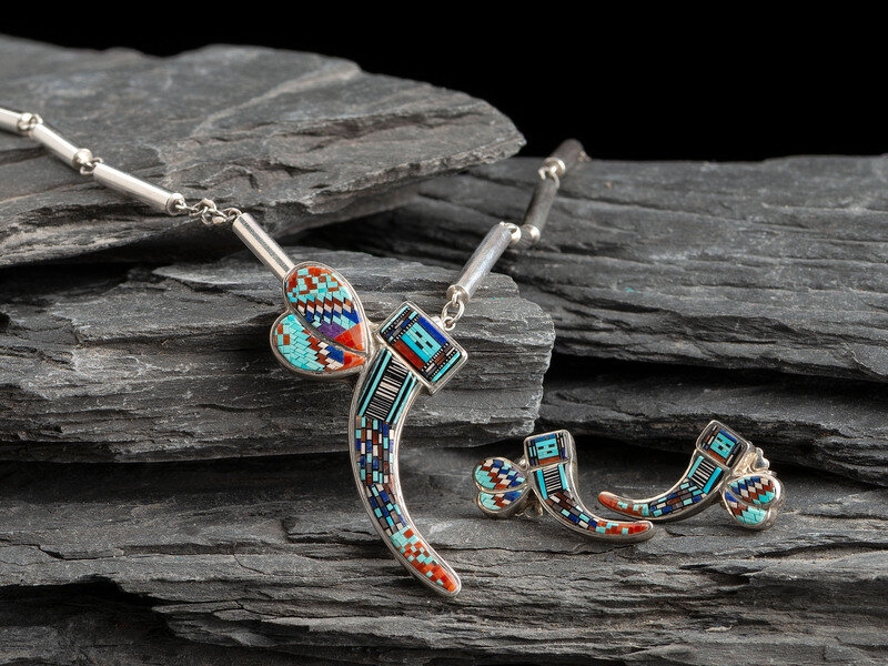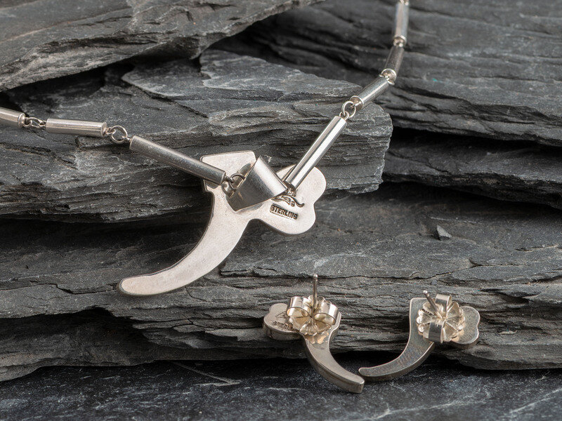 Sterling Silver Micro Mosaic Inlay Dragonfly Necklace and Post Earring Set