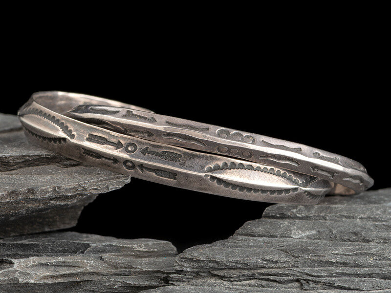 Pair of Navajo Stamped Ingot Carinated Cuff Bracelets