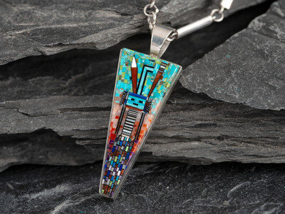 Sterling Silver Micro Mosaic Figural Pendant, with Micro Mosaic Chain