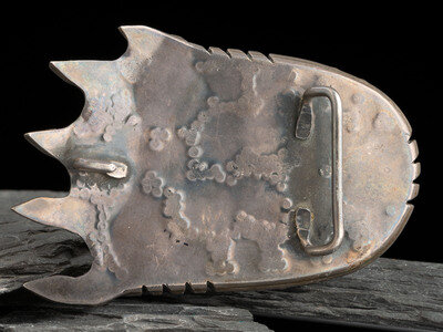 Heavy Navajo Silver and Turquoise Bear Paw Belt Buckle