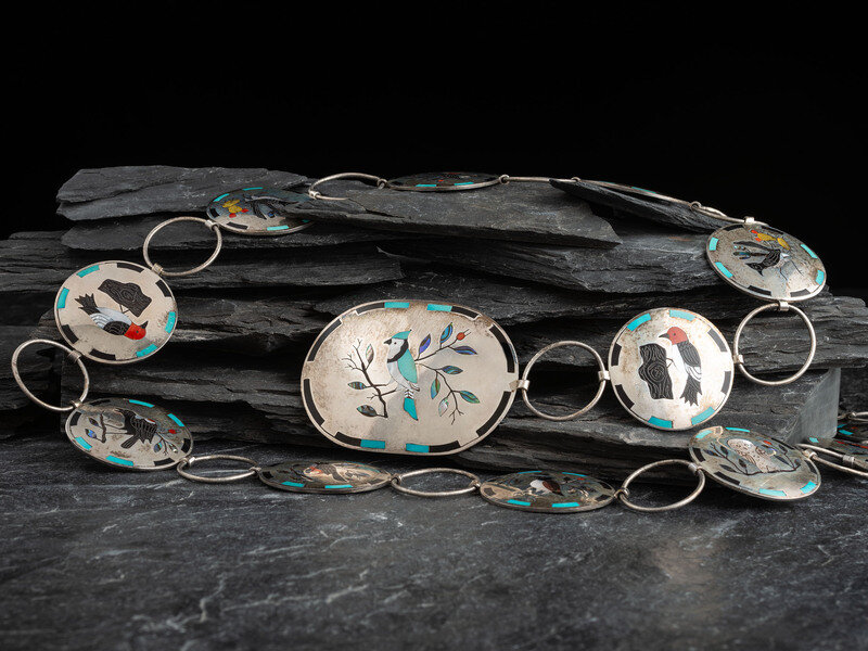 Sterling Silver Link Concha Belt, with Avian Mosaic Inlay