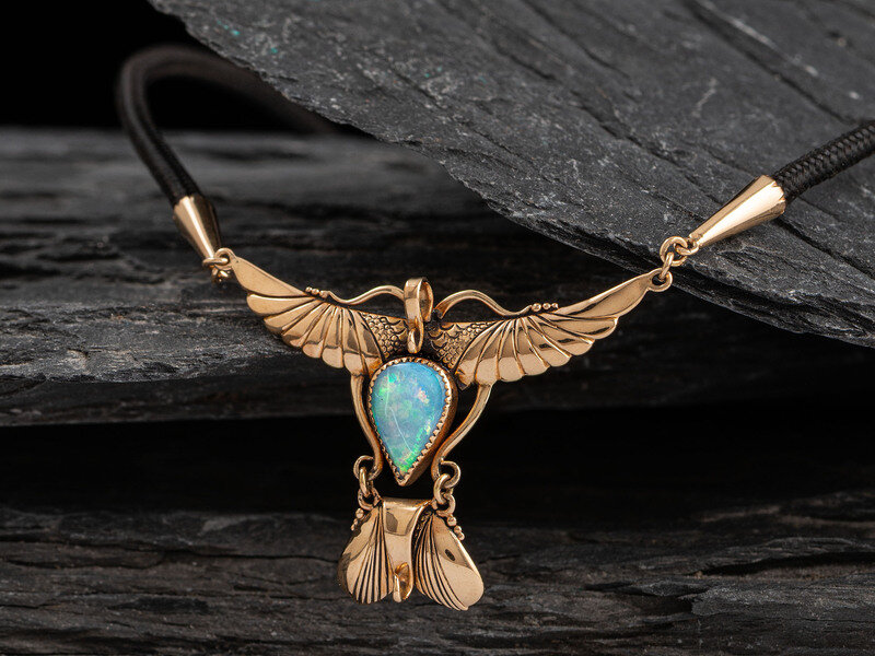 14K Gold and Opal Winged Choker Necklace