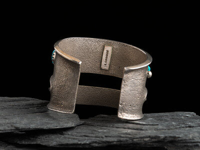 Tufa Cast Silver Cuff Bracelet, with Abstract Figural Inlay