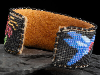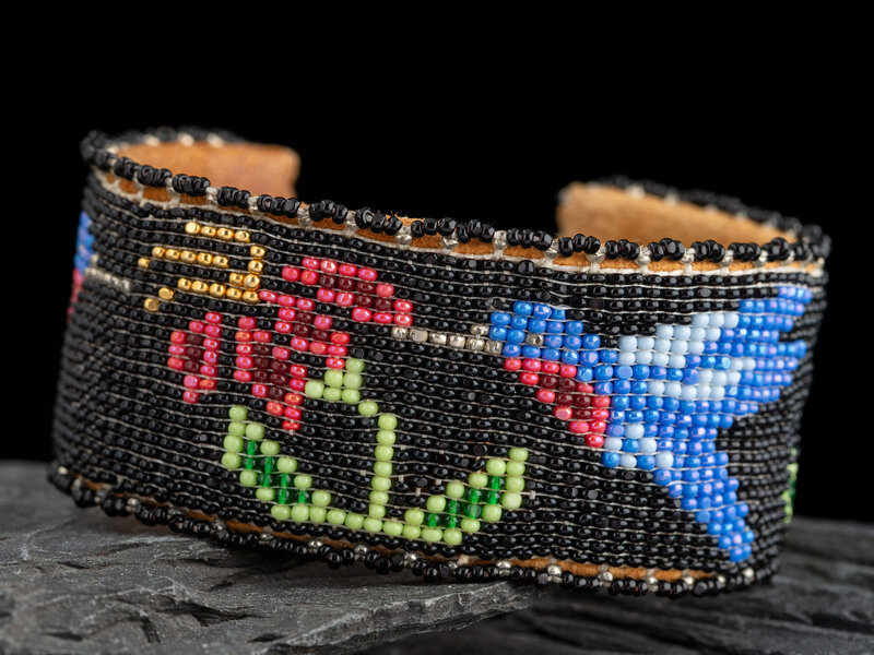 Beaded Floral Hummingbird Cuff Bracelet, 20003