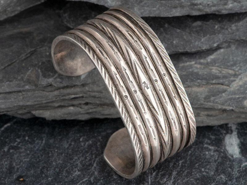 Navajo Cuff Bracelet, with Whirling Log and Arrow Stamps