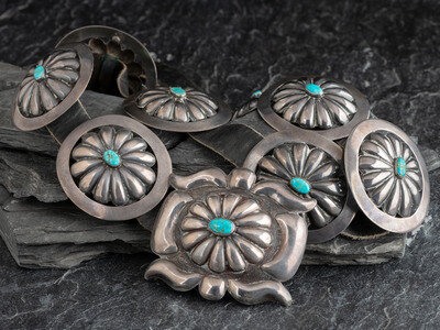 Southwestern-style Silver and Turquoise Concha Belt