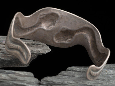 width 1-1/8 inches, interior circumference 5-1/2 inches + gap length 1-3/8 inches, weight 15.3 dwt.