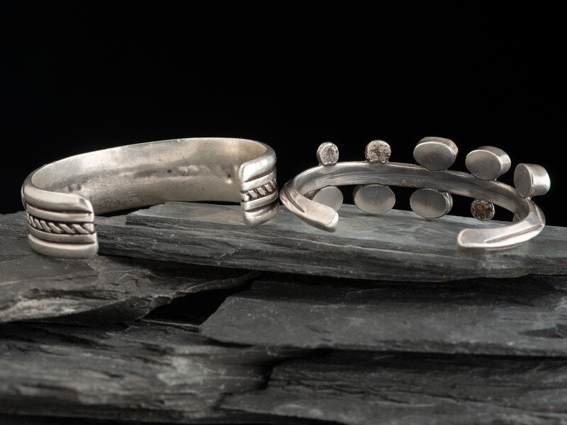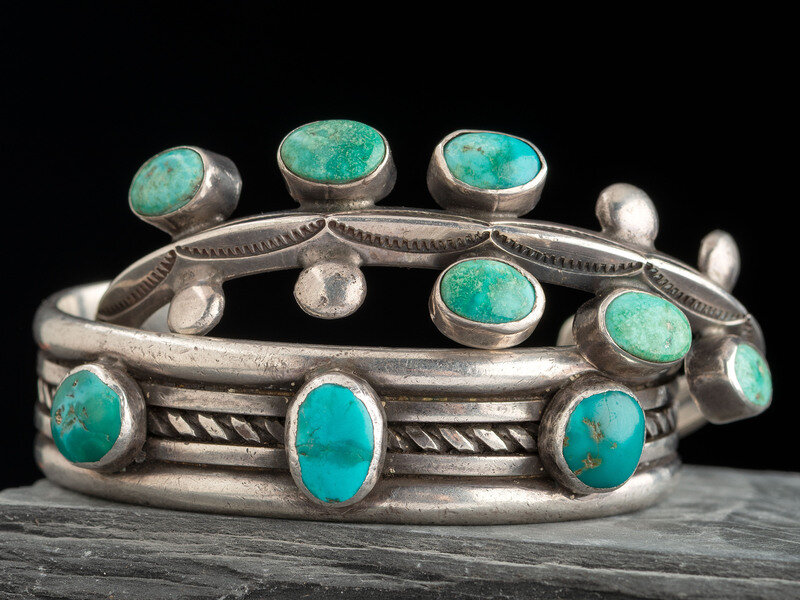 Pair of Navajo Silver and Turquoise Cuff Bracelets