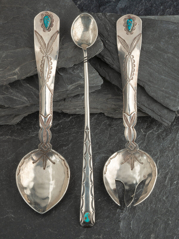 Navajo Silver and Turquoise Salad Flatware Set and Cocktail Spoon