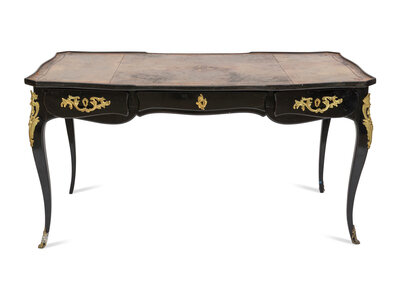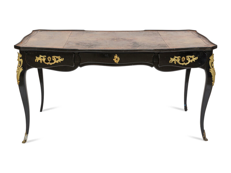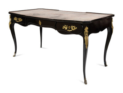 A Louis XV Style Gilt Bronze Mounted Ebonized Bureau Plat