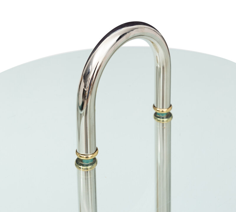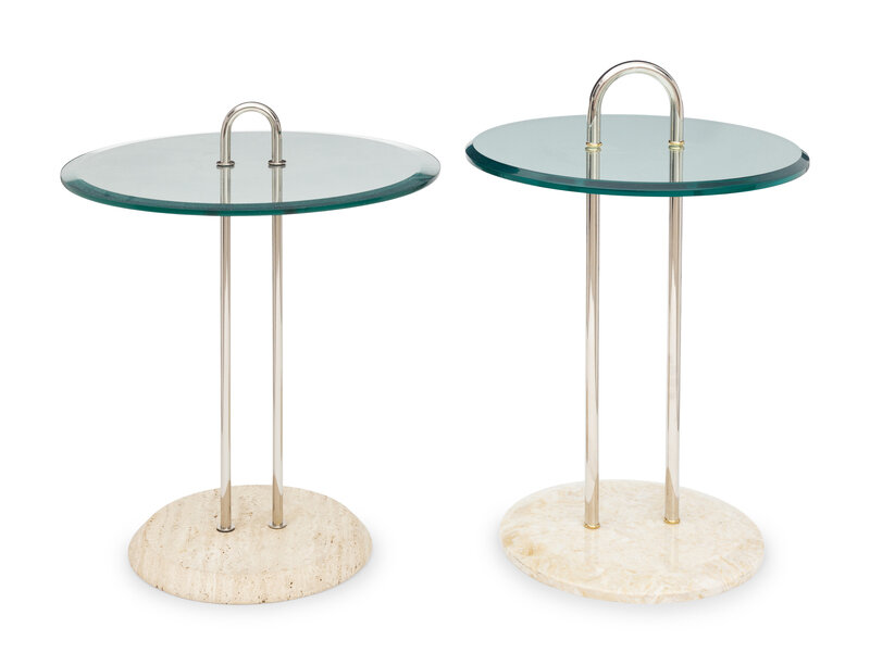 An Italian Travertine, Chrome, and Glass-Top Side Table