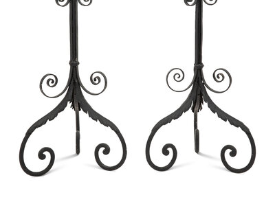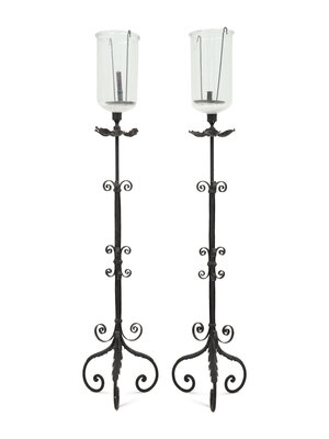 A Pair of Spanish Colonial Style Wrought Iron Floor Lanterns