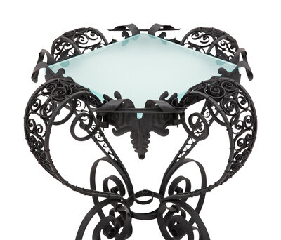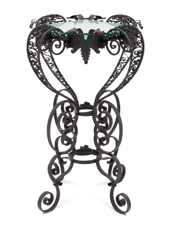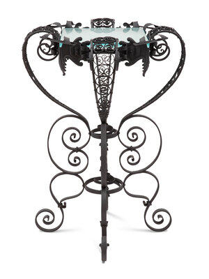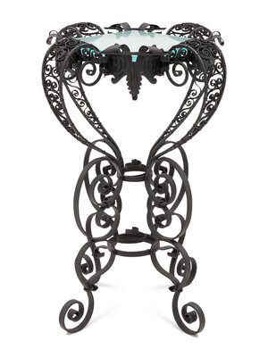 A Spanish Colonial Style Wrought Iron and Glass Stand