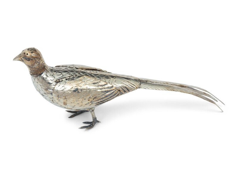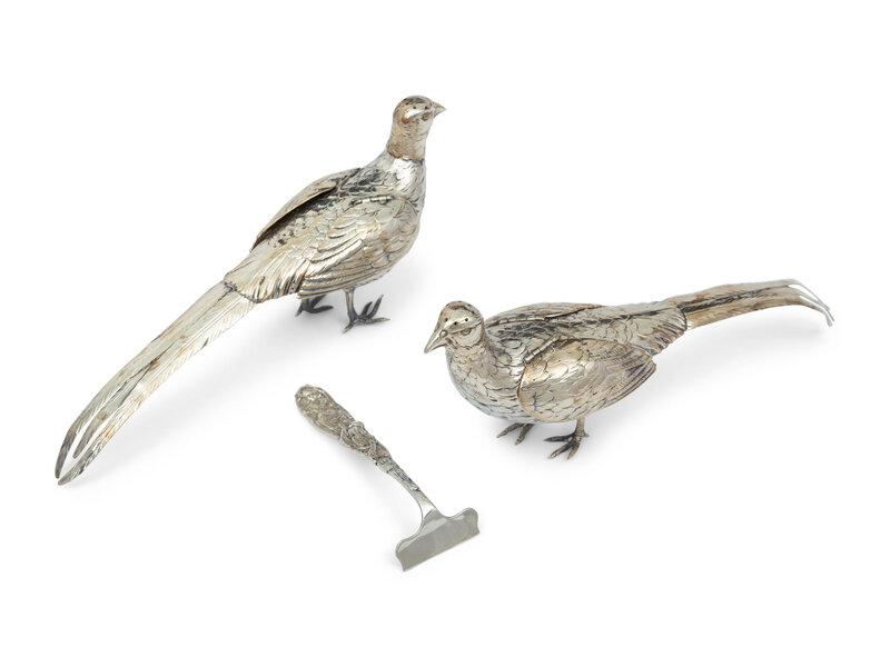 A Pair of German Silver Pheasant Form Casters