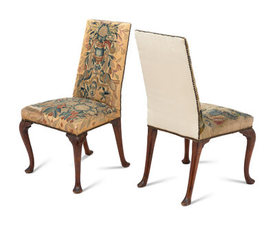 A Pair of George II Tapestry-Upholstered Walnut Side Chairs