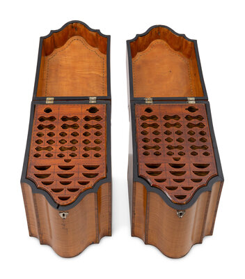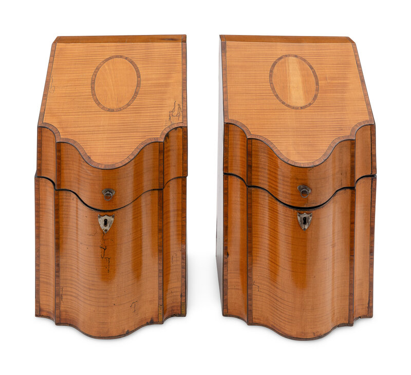 A Pair of George III Mahogany and Satinwood Cutlery Boxes