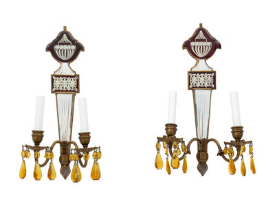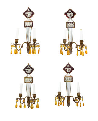 A Set of Four Regency Style Mirrored Two-Light Sconces