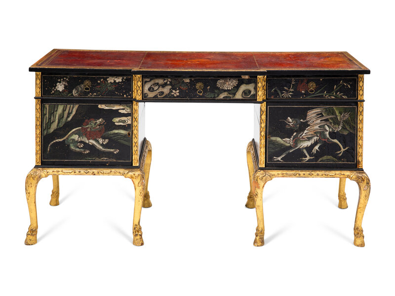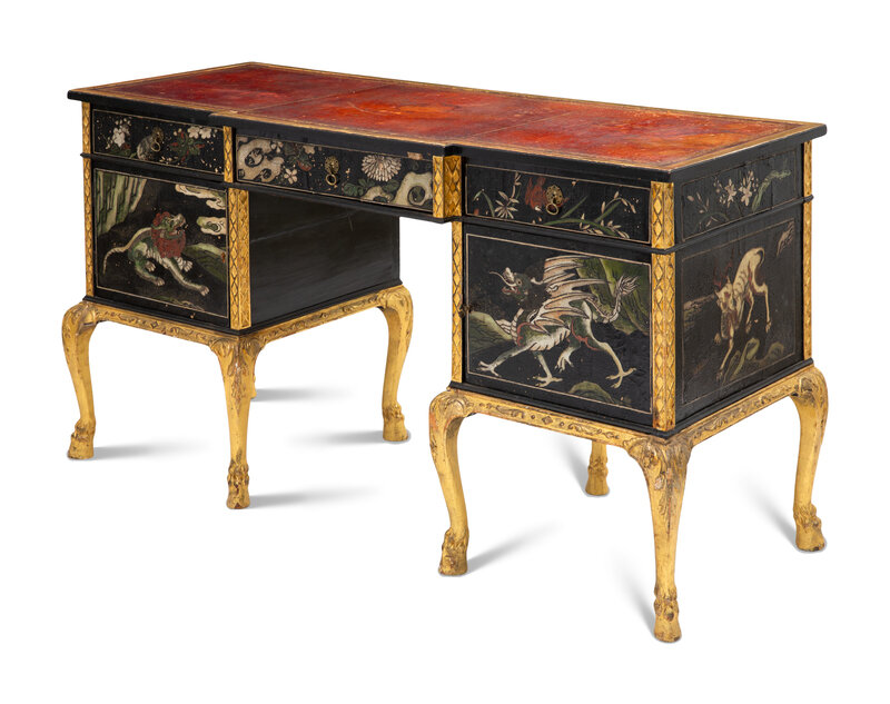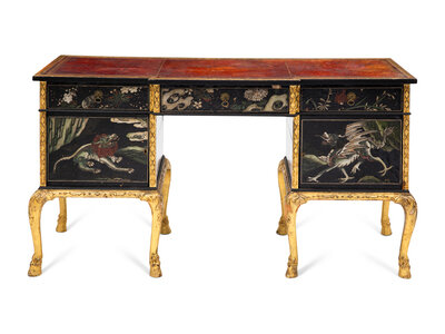 An English Giltwood and Lacquer-Inset Pedestal Desk