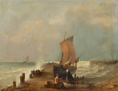 Fisherwomen Chatting by the Seaside
