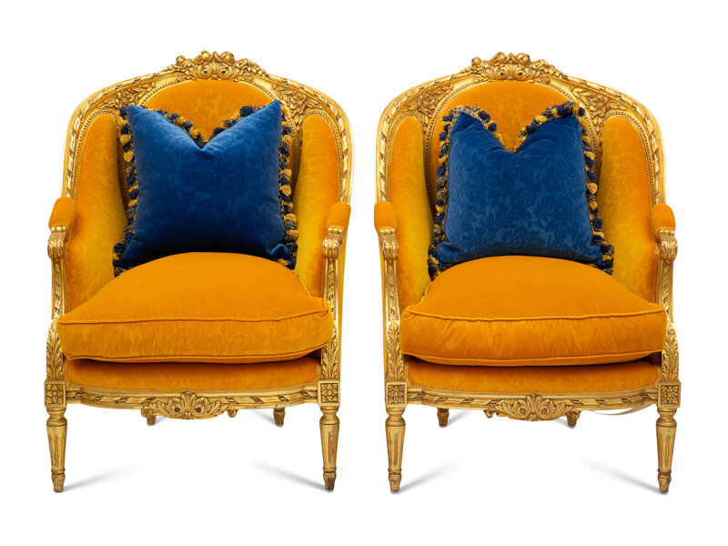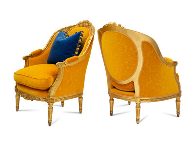 A Pair of Louis XV Style Giltwood Bergères
