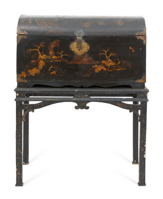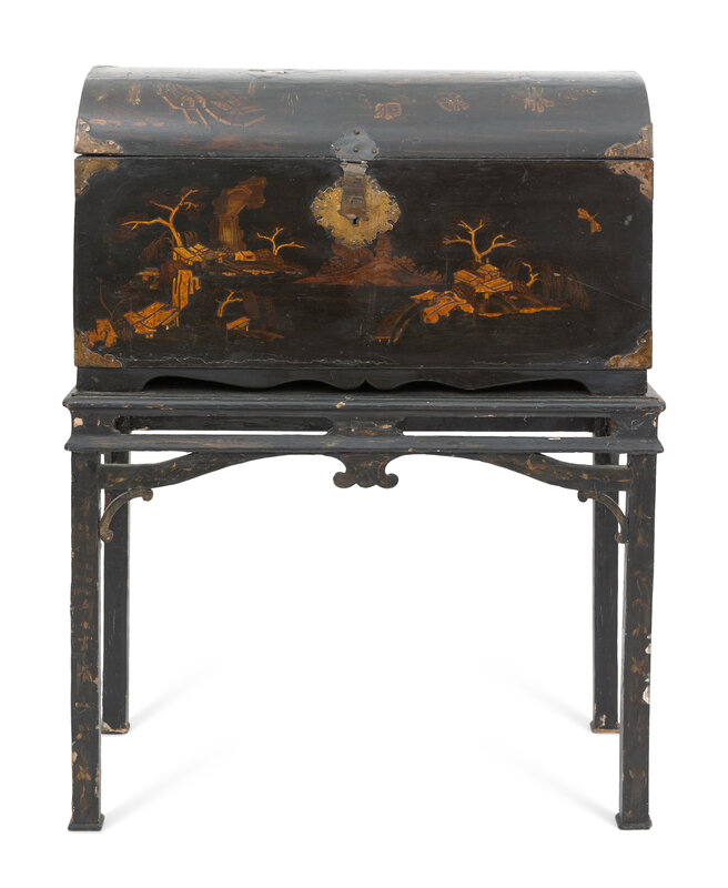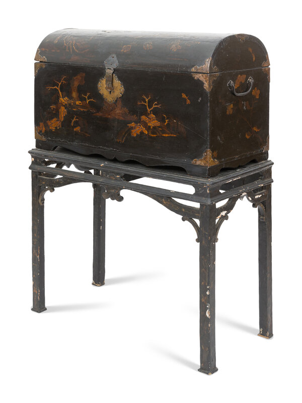 A Chinese Export Black Lacquered Trunk on Stand