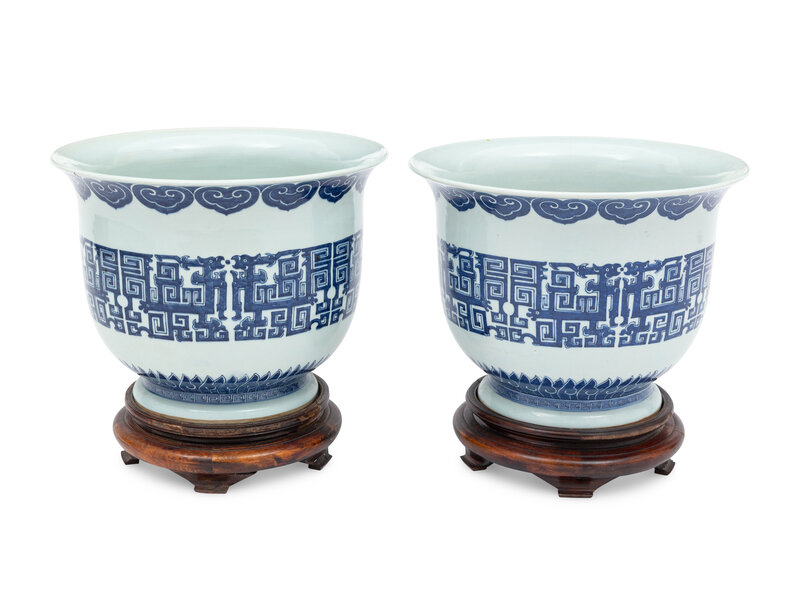 A Pair of Chinese Blue and White Porcelain Jardinières