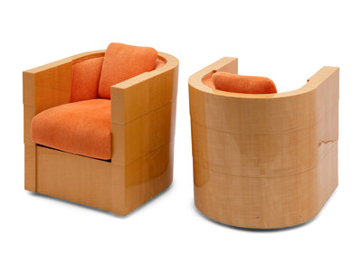 A Pair of Enrique Garcel Satinwood Club Chairs