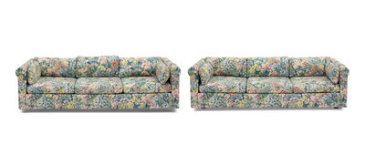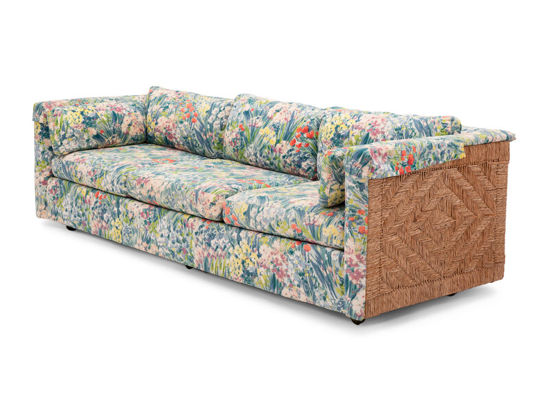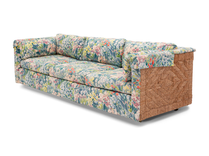 A Pair of Custom Woven Reed Three-Cushion Sofas