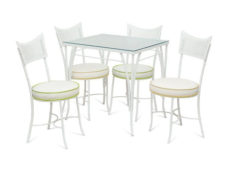 A Powder-Coated Metal Five-Piece Garden Table and Chairs