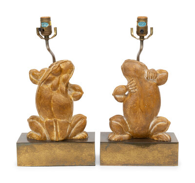 A Pair of Brass and Composite Frog Table Lamps