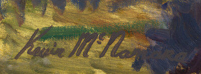 signed Kevin McNamara (lower left); signed and titled (on canvas margin)