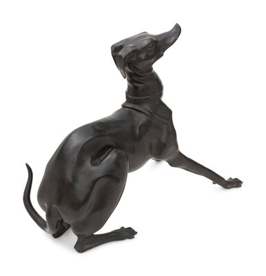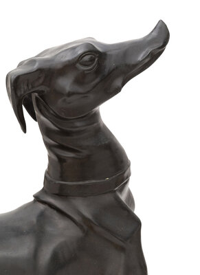 A Large Patinated Metal Sculpture of a Greyhound