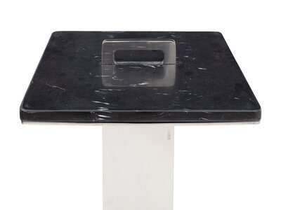 A Pair of Contemporary Polished Steel and Marble Side Tables