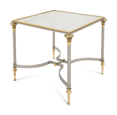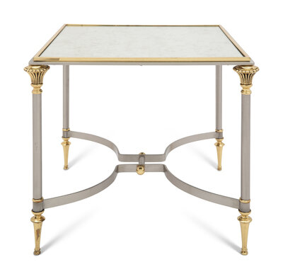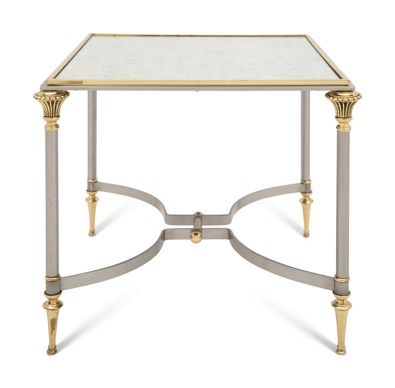 A Brass, Steel, and Mirror-Top Side Table