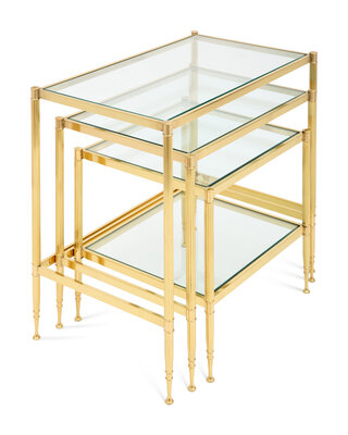 A Set of Three Brass and Glass Nesting Tables