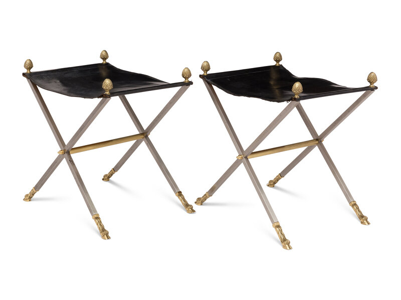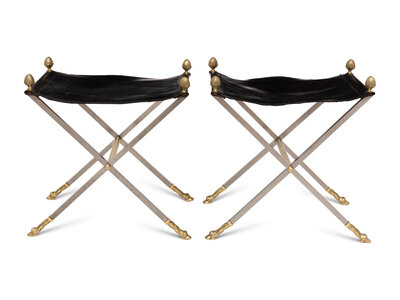 A Pair of Steel and Leather Campaign Stools