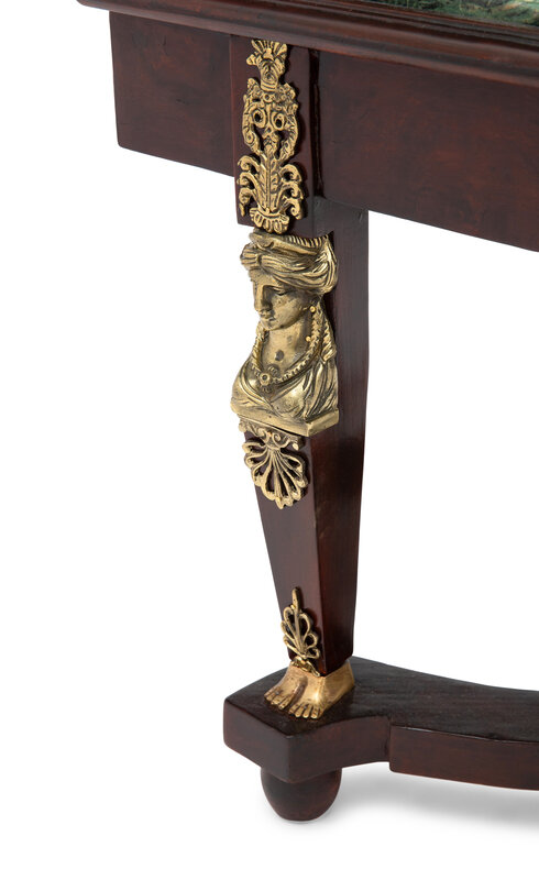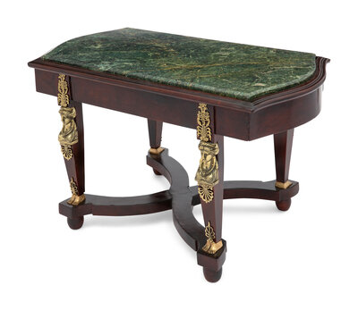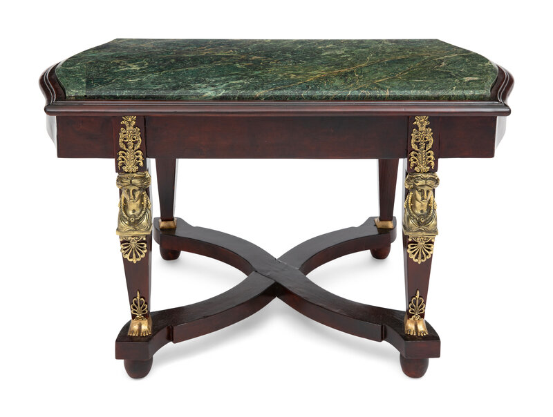 An Empire Style Brass Mounted Mahogany and Marble-Top Cocktail Table