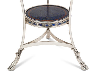 A Pair of Empire Style Silvered Bronze and Mosaic-Top Gueridons