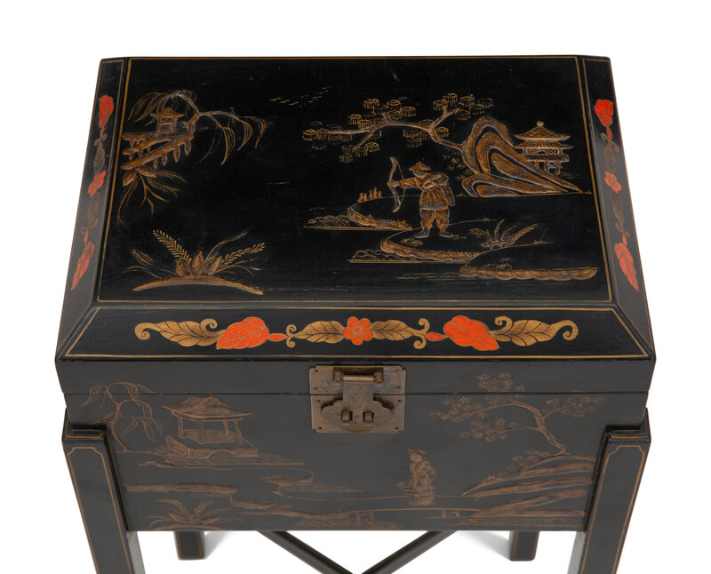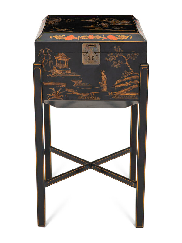 A Chinoiserie Decorated Casket on Stand