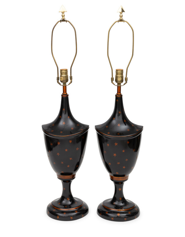 A Pair of Painted Urn-Form Table Lamps