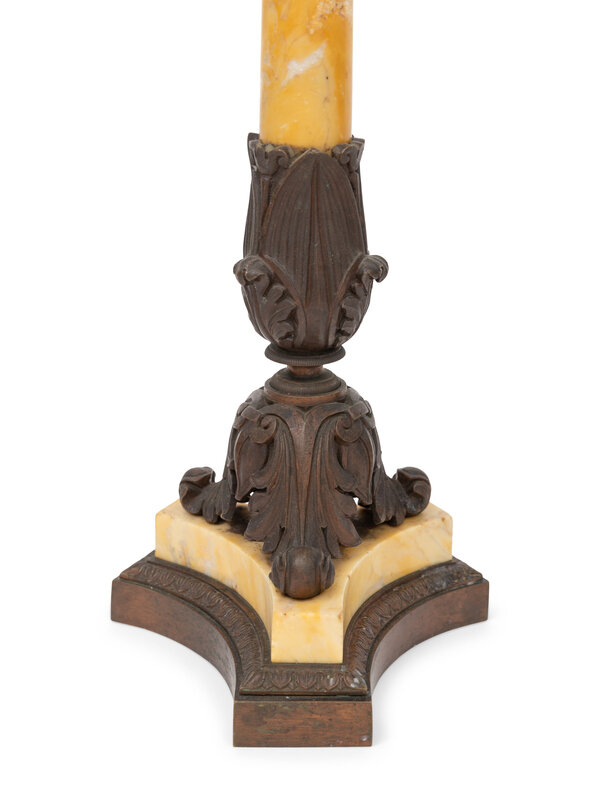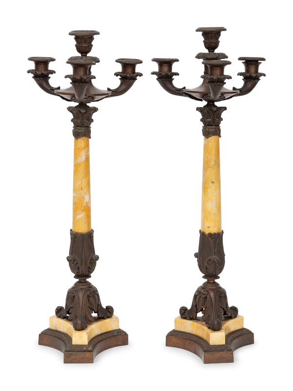 A Pair of French Bronze and Marble Four-Light Candelabra