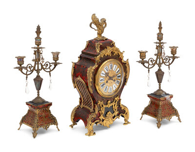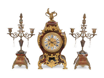 An Assembled Napoleon III Style Gilt Bronze Mounted Boulle Marquetry Clock Garniture