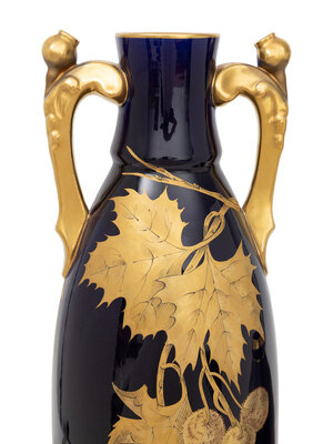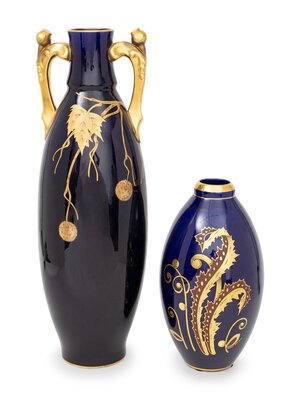 Two French Bleu de Tours Gilt Cobalt Porcelain Vases
