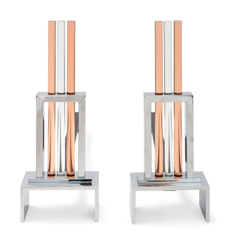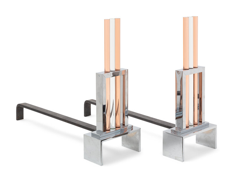 A Pair of Art Deco Style Chrome and Glass Andirons