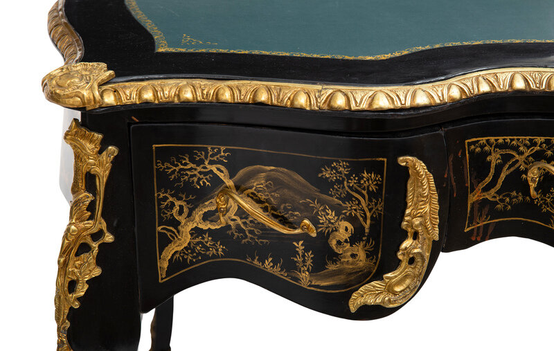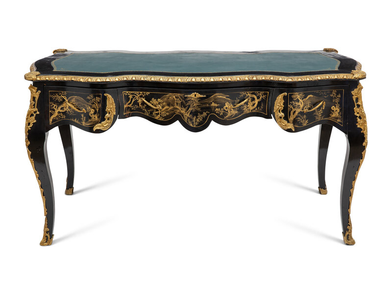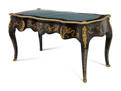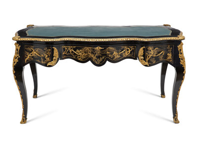 A Louis XV Style Gilt Metal Mounted Black and Gilt-Japanned Bureau Plat