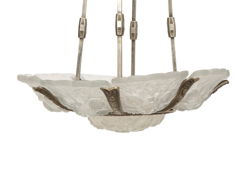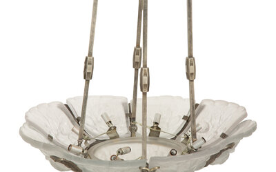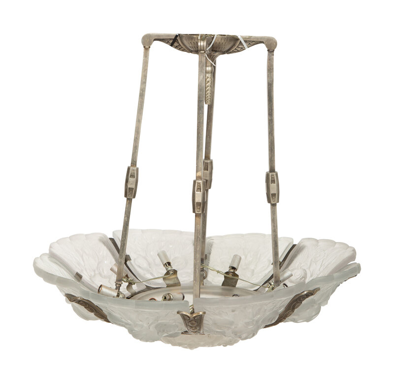 A French Art Deco Frosted Glass Eight-Light Plafonnier