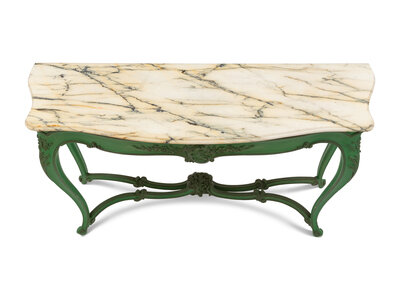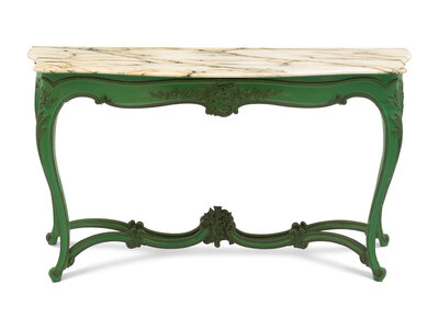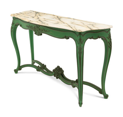 A Louis XV Style Green-Painted Marble-Top Console Table